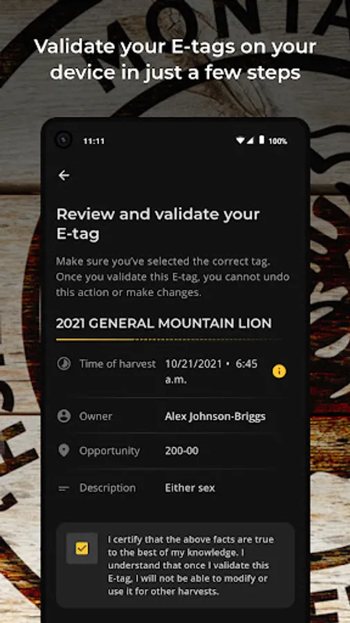 • Customers are required to show validated E-tags to Game Wardens when requested.