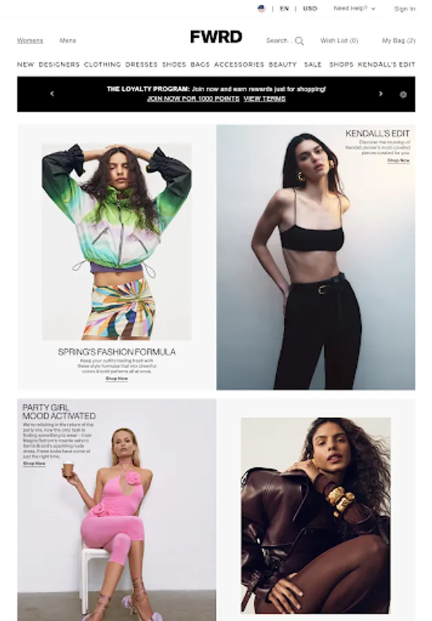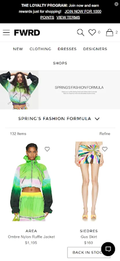 FWRD is the premiere online destination for women's and men's luxury designer apparel, bags, jewelry, accessories, and beauty. A fashion platform with online credibility and boutique sensibility, FWRD creates a elevated shopping experience by showcasing curated collections from an exclusive roster of designers.