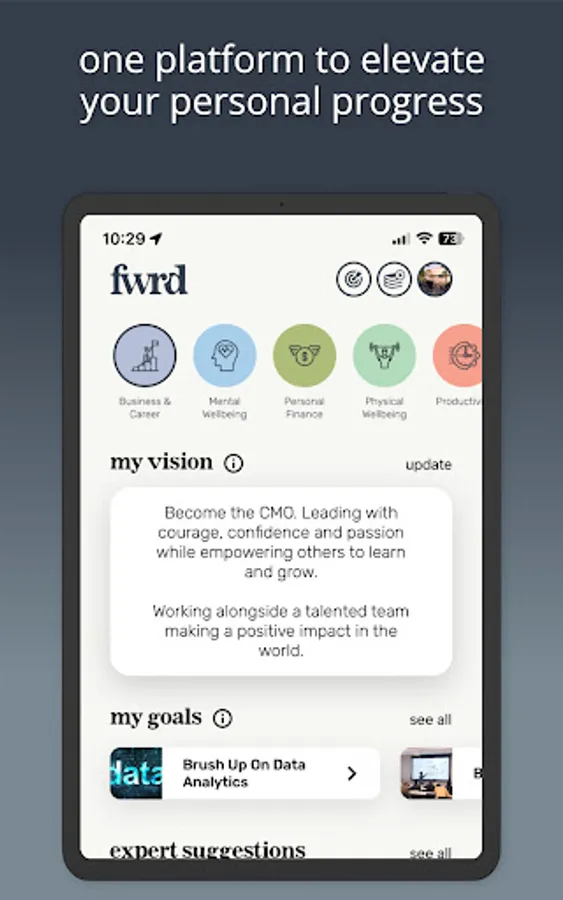 fwrd connects your resources to your life goals while making it easy to set, manage and track your progress across all areas of life.