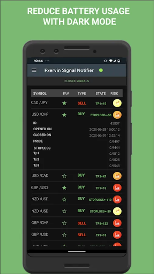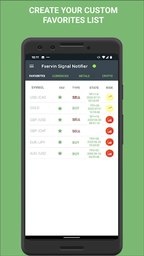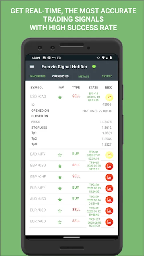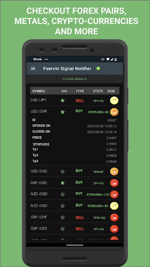 FxErvin - Trading Signals & Analysis is an advanced Android application which brings the best trading signals for traders. You can receive real time Trading Signals on Forex pairs, Metals and Cryptocurrencies with 3 different TP's (three Risk levels: Low Risk, Medium Risk and High Risk) and Stop Loss.