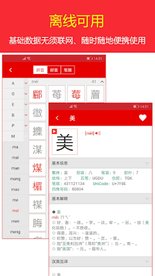 ★Tree-shaped hierarchical, you can look up by pinyin, radicals and strokes, fast switching