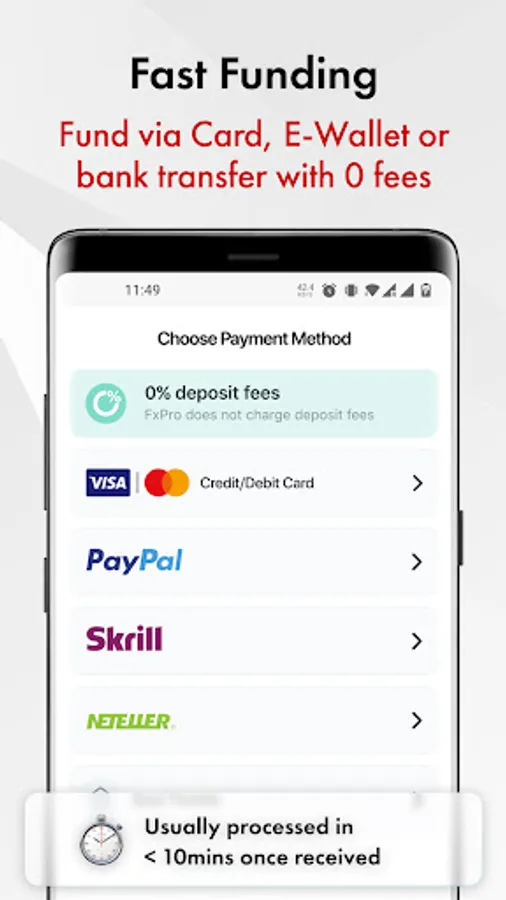 💳Wide range of specialised funding methods, all with NO FEES