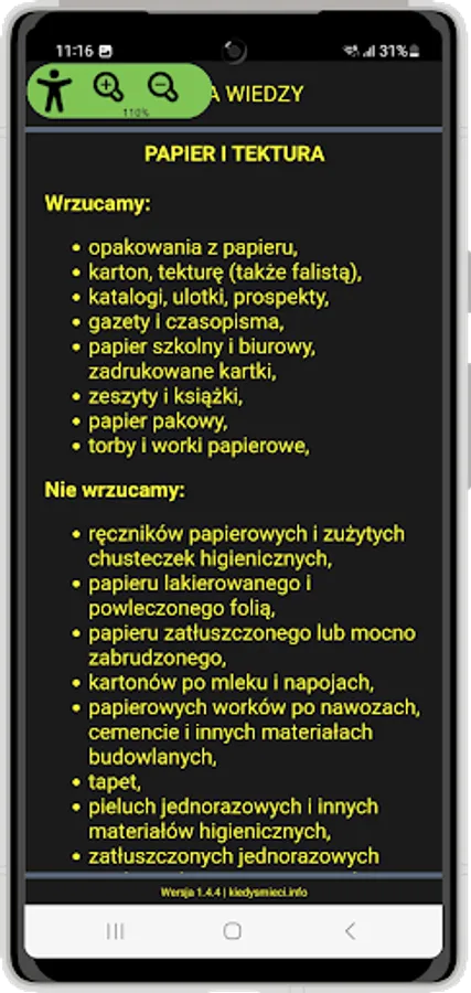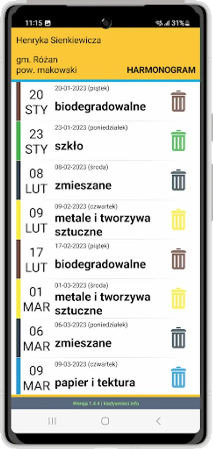 Before installing - check the availability of the schedule for your city at: https://cloud.fxsystems.com.pl/OdbiorSmieci/ Accessibility.dll . When rubbish is a nationwide, free application that provides waste collection schedules. Receive notifications by setting the number of days in advance and the time of receiving the notification. Do you have a composter? Are you not interested in collecting biodegradable waste? Specify it in the application settings. Garbage collection will never surprise you again. The number of localities and their schedules available in the application will systematically increase.