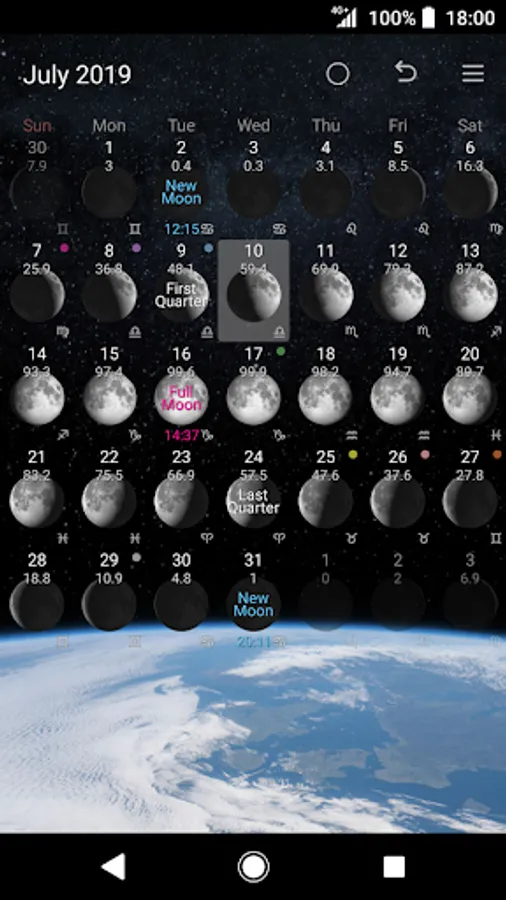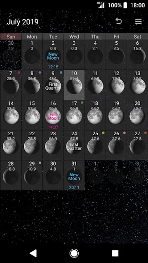 - Notify full moon and new moon, first quarter, last quarter in the status bar.