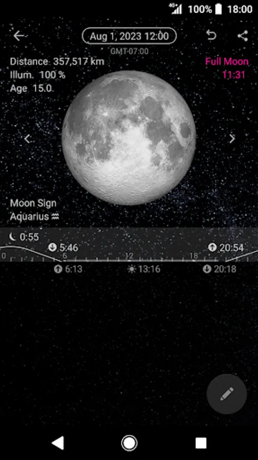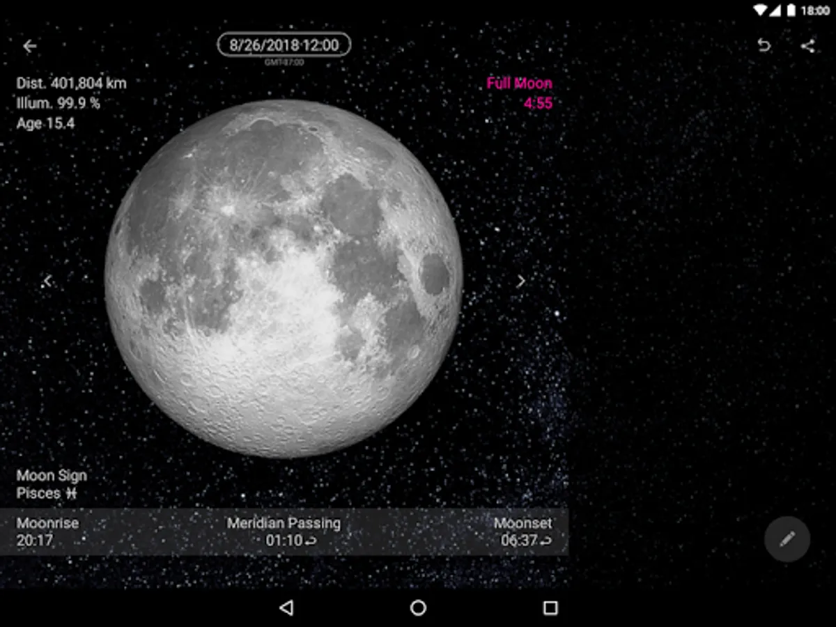 - Detailed data is age of the moon, the distance to the moon, percent illuminated, time of the moonset/moonrise, Moon sign, Mercury retrograde.