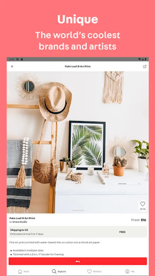 • Shop thousands of the world’s coolest emerging brands and artists in one app