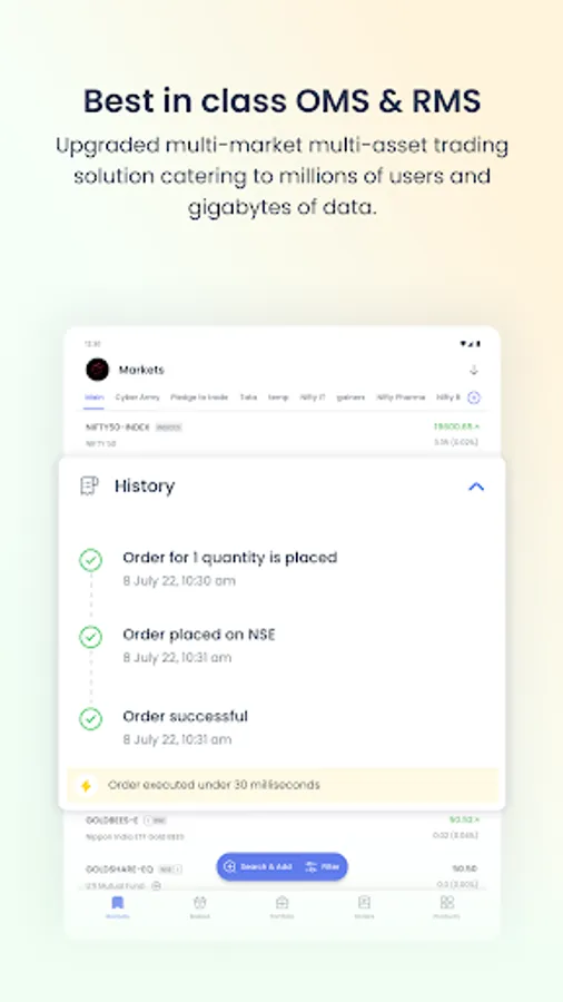 Built with real feedback from 5,00,000+ clients, FYERS gives you a fast, reliable and seamless trading experience in Indian markets across all segments on major exchanges. Trade Entry & Exit is fast with easy navigation from watchlists, option chain & positions. Also, get state-of-the-art charting with 24+ years of historical EOD, and 4+ years of Intraday historical data.