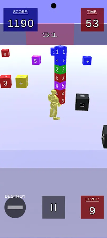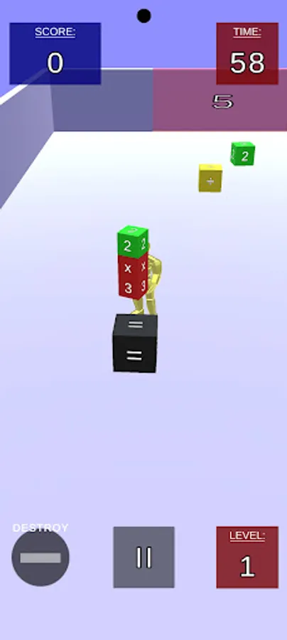 Using the number and operator cubes correctly, reach the cube required to pass to the next level.