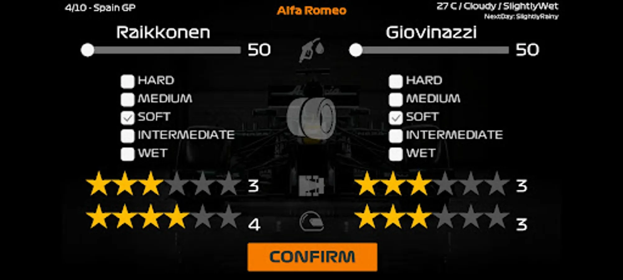 A perfect strategic race on 10 different tracks. Choose your team, choose your pilot's fuel and tire strategy, choose PIT stop times and win the game. It requires a great deal of strategic and tactical skill.