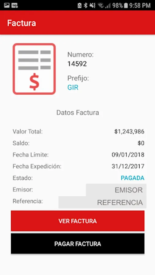 This application has no cost and is exclusively for eBill users who have VIP account eBill (Site). For more information please visit our website (http://facturaenlinea.co).