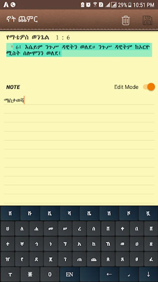 ✅ Attach your notes to any Bible verse with integrated Amharic keyboard
