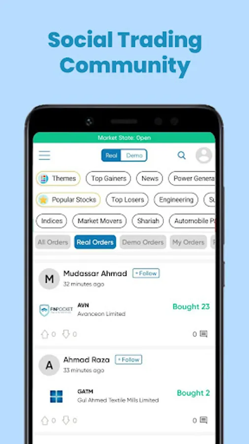 Follow friends, and experienced investors and share your perspectives in the community to become an intelligent investor. You can share your trading decisions within the app with other users of the FinPocket app and learn from them.