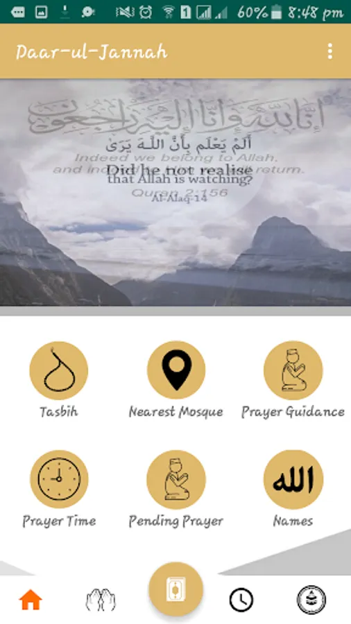 Islam not only serves as a religion but also as a complete way of life. Allah (SWT) sent man, the most favorite amongst all His creations, to this world with the sole purpose of worshipping Him and leading a certain way of life, which was prescribed by the Holy Quran and the Sunnah. Daar-ul-Jannah app helps the user to live life according to the Sunnah. Daar-ul-Jannah has features like prayer guidance as the Prophet Muhammad (PBUH) guide to pray Salah. Each step of Salah is described in this feature in form of pictures with elaborated description. Along with the categorical description of steps. Tasbeeh Counter for the zikar has also been provided for the user. User can select, count, read, and reset. A map displaying the nearby mosque facilitates the user in maintaining his punctuality of the prayer. The most useful feature included in Daar-ul-Jannah is the prayer notification that shows the exact time that one need to perform each of the five daily prayers. Prayer times are based on user’s location, and user can track his/her performance by maintaining the prayer status. The application also provided Masnoon Duas that plays related to user’s action. It includes 40 masnoon duas, morning and evening remembrance which help user to be more efficient and include these duas in their daily life. 99 names of Allah and Muhammad (PBUH) are also provided with their audios and meanings. With the help of these features user will be able to live their life according to Sunnah. This application helps user to be more regular towards Islamic deeds and duties.