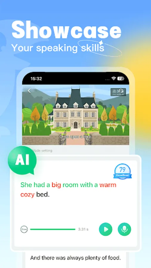 [AI English] Use the AI algorithm to score your pronunciation and automatically correct the pronunciation. If you dub a sentence or a word, it will recognize your pronunciation problem within one second and tell you The real way of pronunciation, correct your mispronunciation. In addition to clear correct and incorrect pronunciation at a glance, there are also detailed explanations of pronunciation, which can quickly correct incorrect pronunciation and help improve oral English.