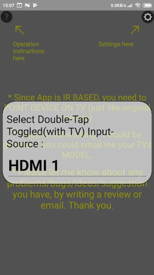 ** User should point device on TV(like with original remote)