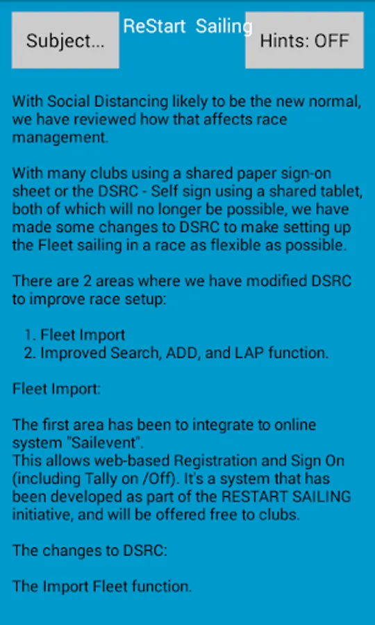 - 'Restart Sailing' changes made to competitor import from web based sign-on Sail Event