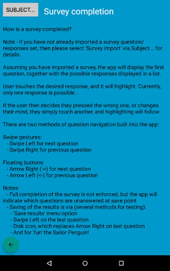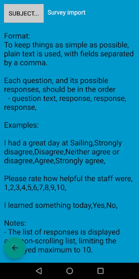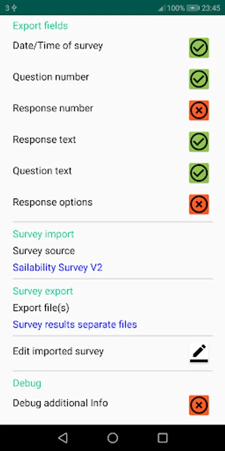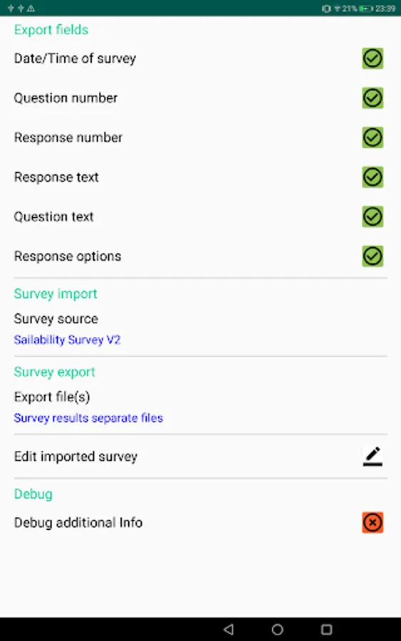 - Saving of the survey results in separate files, or single 'daily' file ( files are .csv)