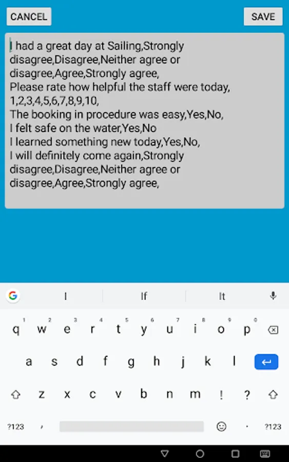 - Selection of which fields are to be included in save (e.g. question, response, etc.)