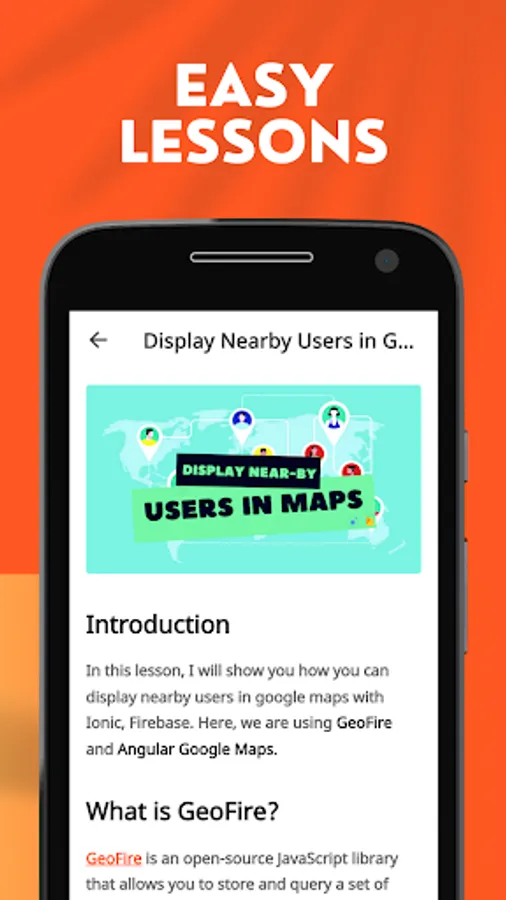 The app includes individual lessons and courses to learn Ionic and other kinds of stuff.