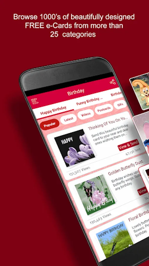 • Video, Animated, Postcard and Gif type ecards to be shared with the world for FREE!!
