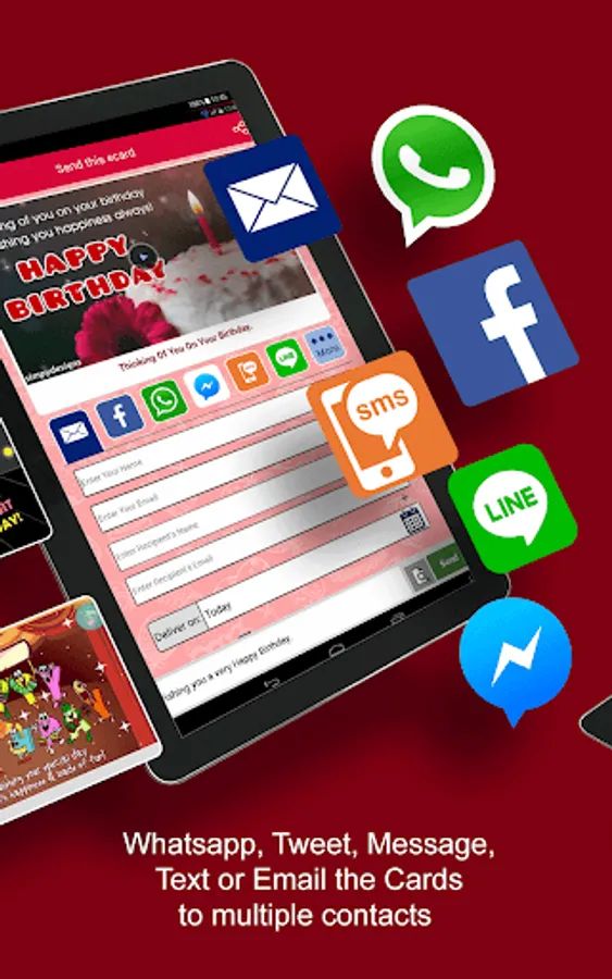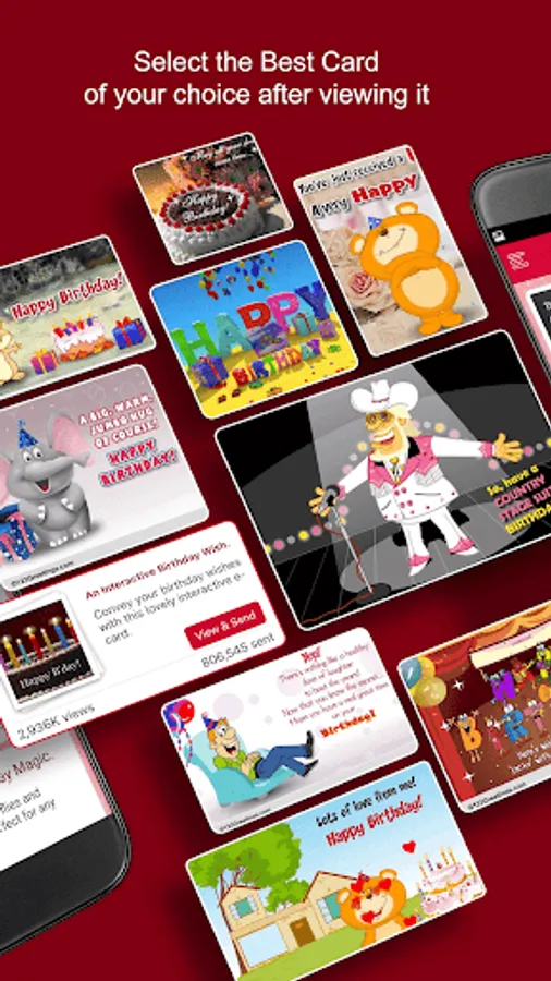 • Interesting Video cards, Postcards and Gif cards to wish friends on their social media platform instead of just plain Text wish.