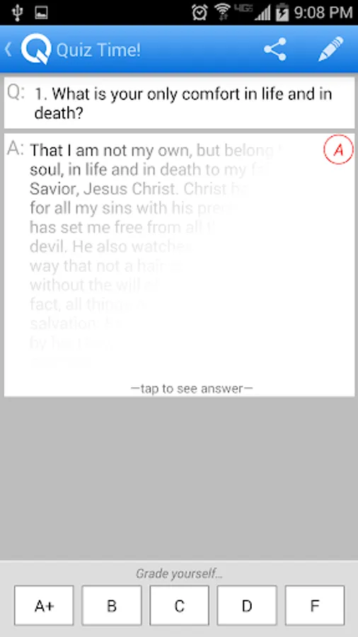Grade yourself: Questions with lower grades are displayed more often so you can focus on what you need to learn the most.