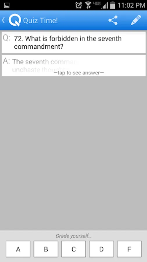 Grade yourself: Questions with lower grades are displayed more often so you can focus on what you need to learn the most.