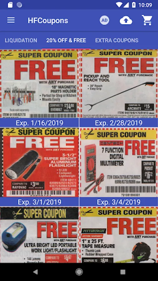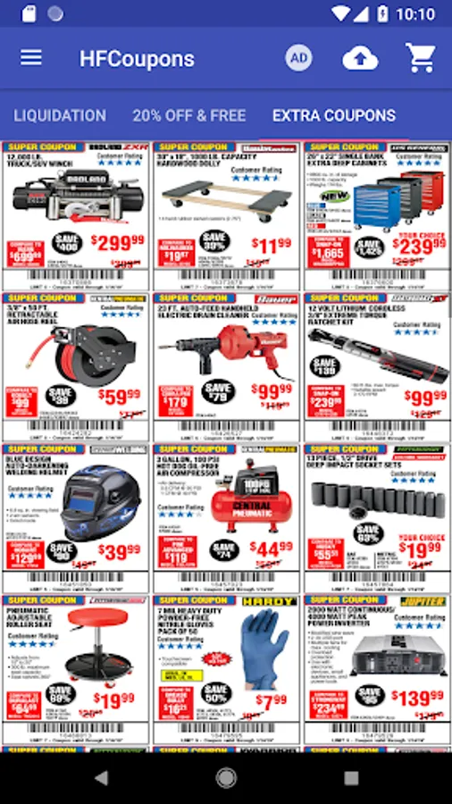 You can search Harbor Freight coupons and deals from this app. Add your favorite coupons and deals into the shopping list.