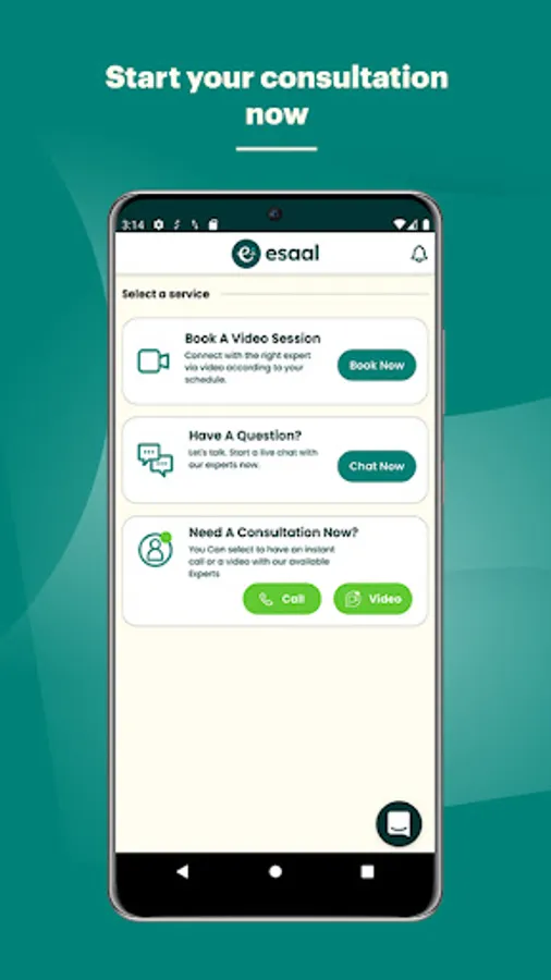 Esaal.me is an online consultancy app that connects people to certified experts through a user friendly, chatting based interface. Our vision is to enhance people’s lives by providing them with a certified answer about their personal matters through chatting and video sessions. We aim to cover all fields that come to mind as well as have our users backed up with experts that will offer the utmost help.