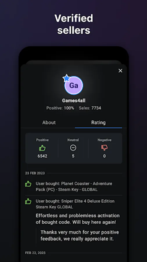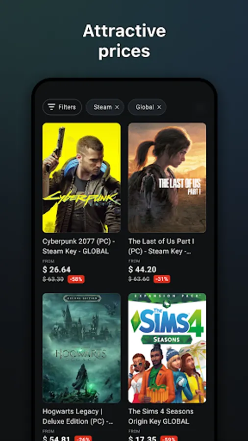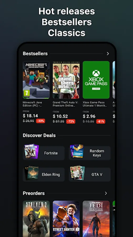 Unless you buy at G2A.COM! We have thousands of amazing games, both hot releases, evergreen classics, and some you might have never even heard of, coming at prices which are too good to ignore. Quick deals, regular sales, and consistently attractive discounts — this app is your gateway to affordable gaming adventures.