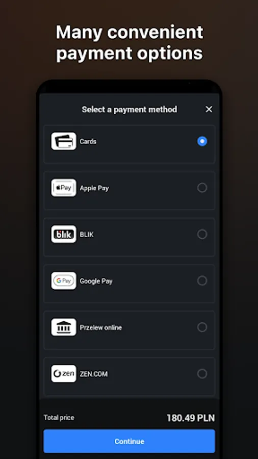 • Many payments methods to choose from — we offer a variety of international and regional methods to make the checkout convenient for you.