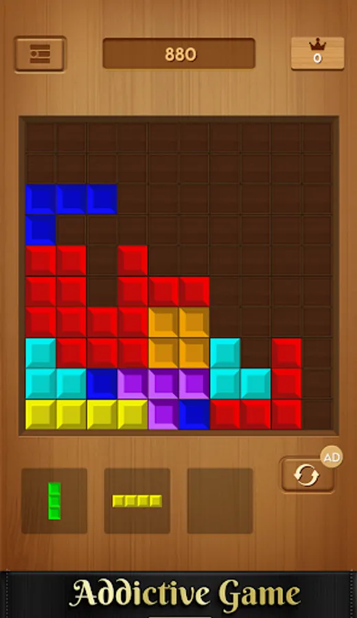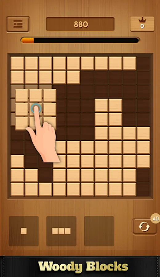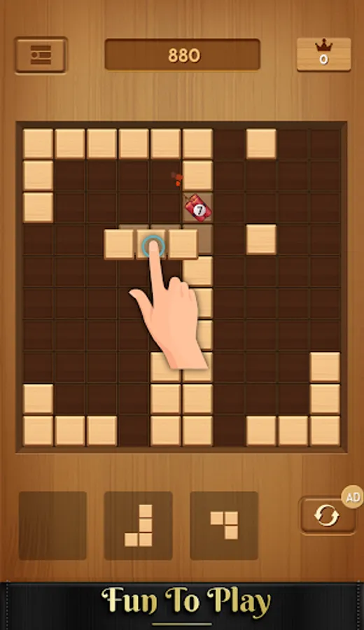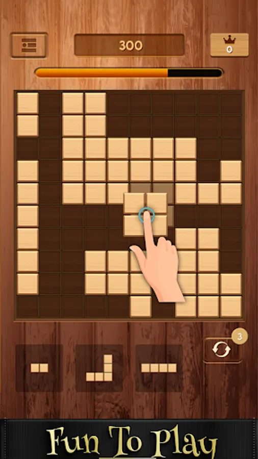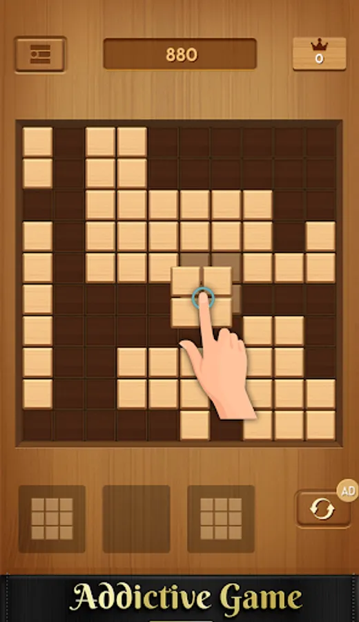 Wood block puzzle is a wood style block puzzle game. Easy to play, but difficult to be a master. More blocks crush, more score you will get.