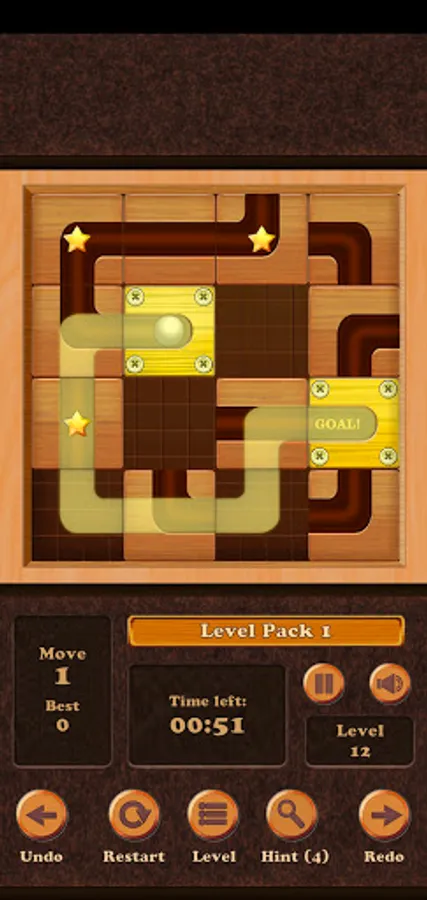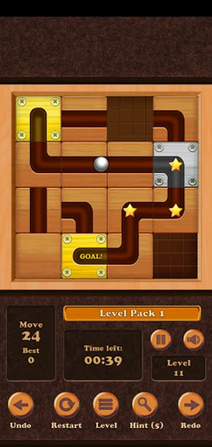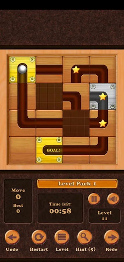 The gameplay is super simple just slide the wooden blocks up, down, right, left to make the way for the ball to reach its goal. Just keep in mind that there are some blocks which are immovable leave them as it is.