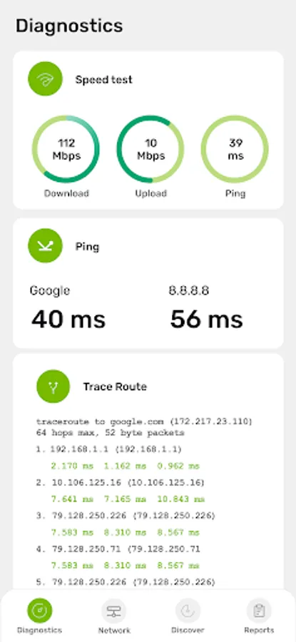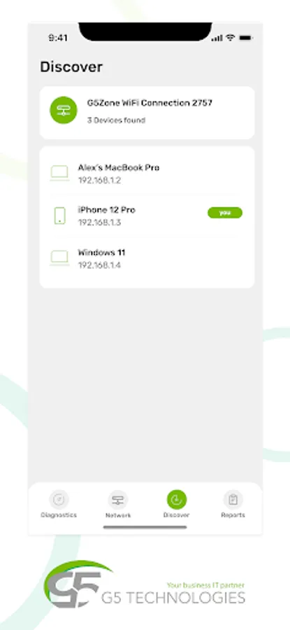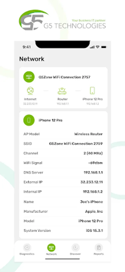The data collected includes: Network card, IP addresses/configuration, and network connectivity information.