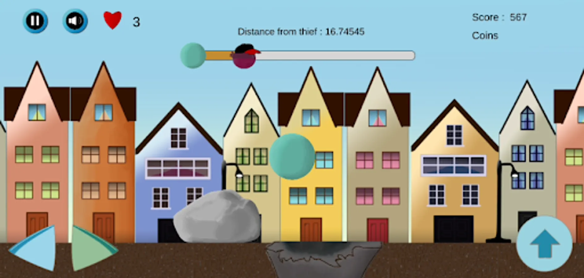 Billy just bought a hat, fresh from store and while it was happily on the way back, its hat is stolen by a thief.Billy filled with anger and frustration starts chasing that surprisingly super-fast thief. Chase the thief all the way through the town whilst crossing the obstacles that come your way and maintain the tolerable distance between you and thief.