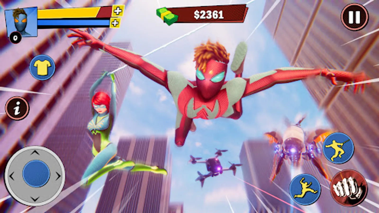 Be a flying superhero to rescue people by using their spider rope hero skills.