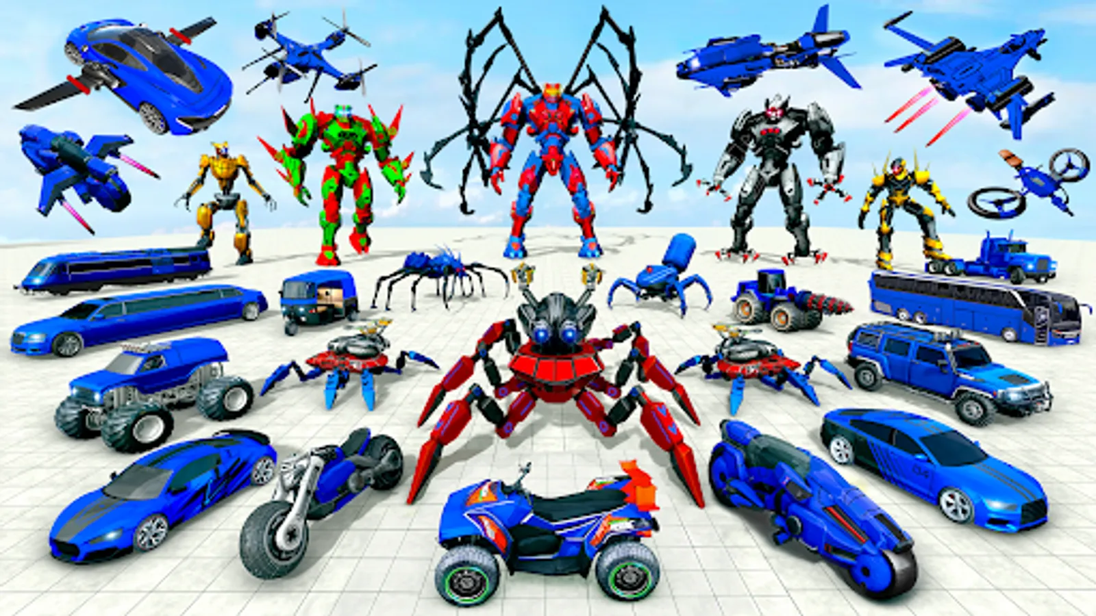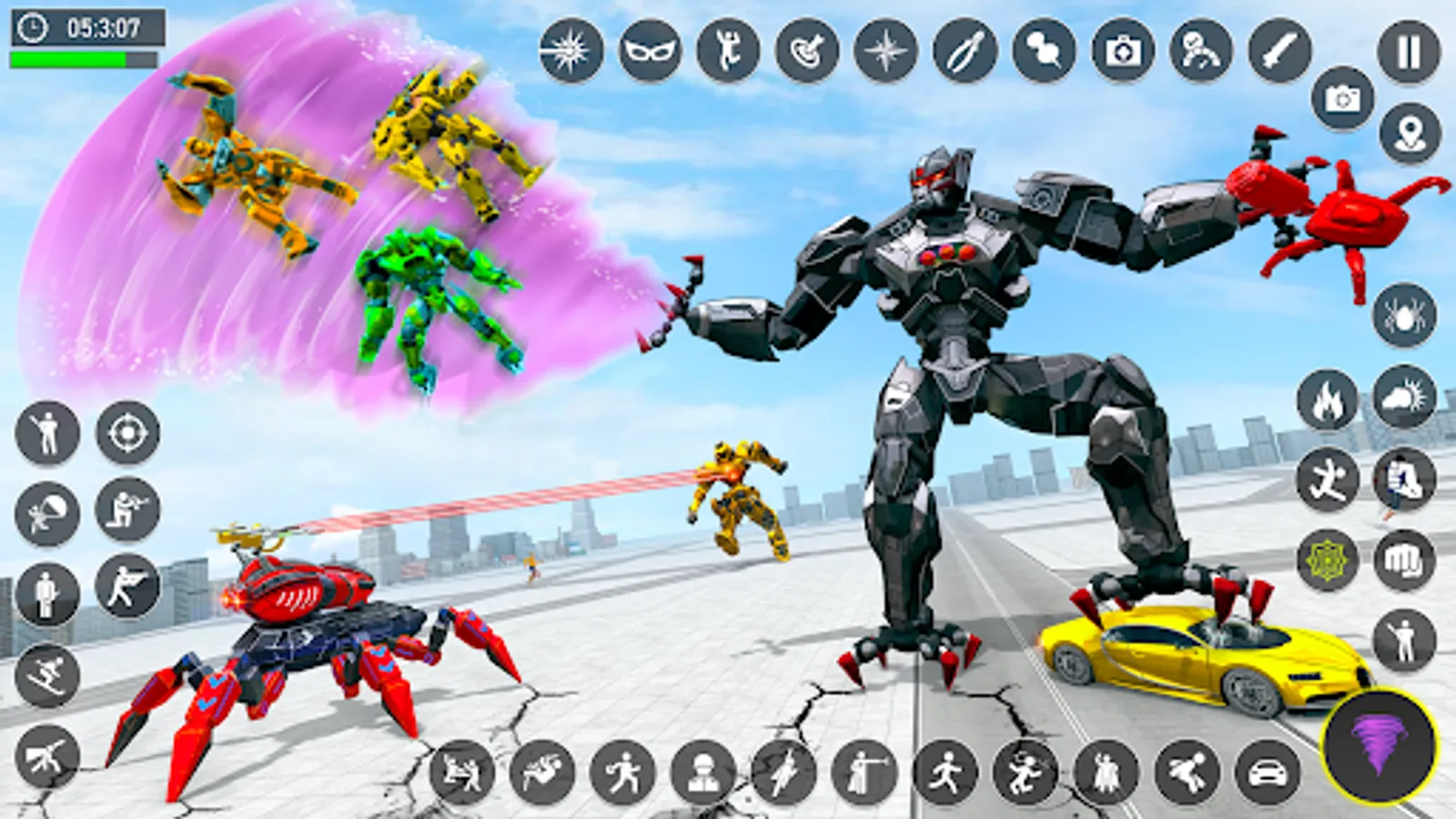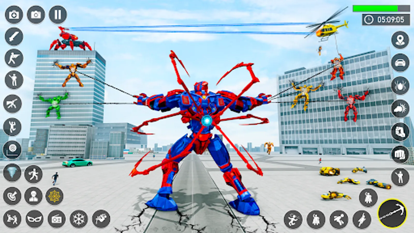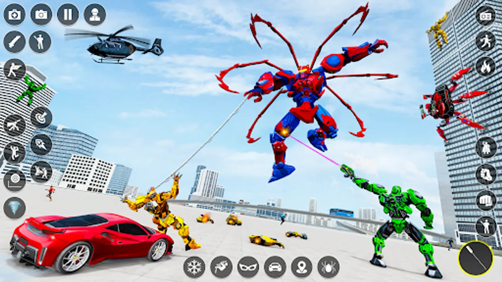 As the Spider Rope Hero, you'll swing through the city with your trusty ropes, leaping from one building to another to win the city battle of this robot car transformation game. As spider hero robot, explore city and take on various challenges in robot transforming games to eliminate evil robots in spider games. With your rope skills, no obstacle is too big to overcome in this robot simulator. All you need is choose your favorite hero robot car games and do spider fight against grand gangster robots in crime city game of robots.