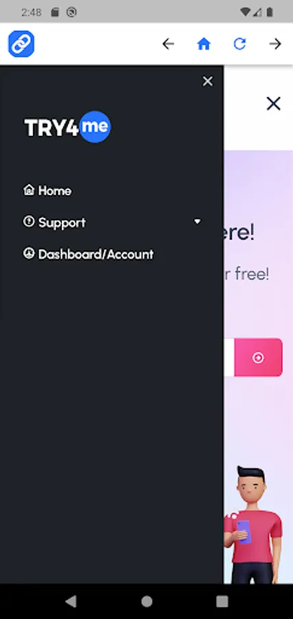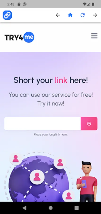 You can easily usr our platform with or without account. If you use it without account, your links will only be shorted. Try4Me is a platform that shorts links, free of charge. But you always can monetize your views by creating an account.