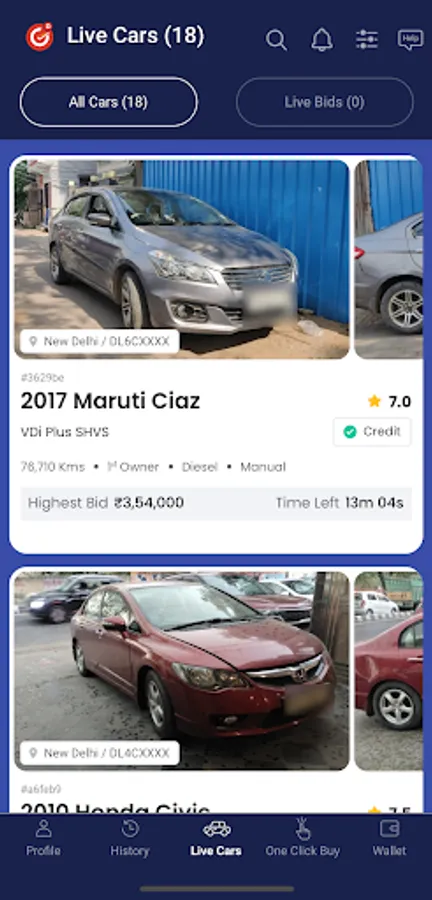 Having a proper record of all your investments is important and so we have the history option in the app which allows you to keep a track of all the auctions you participated in and the bids you placed for those cars.