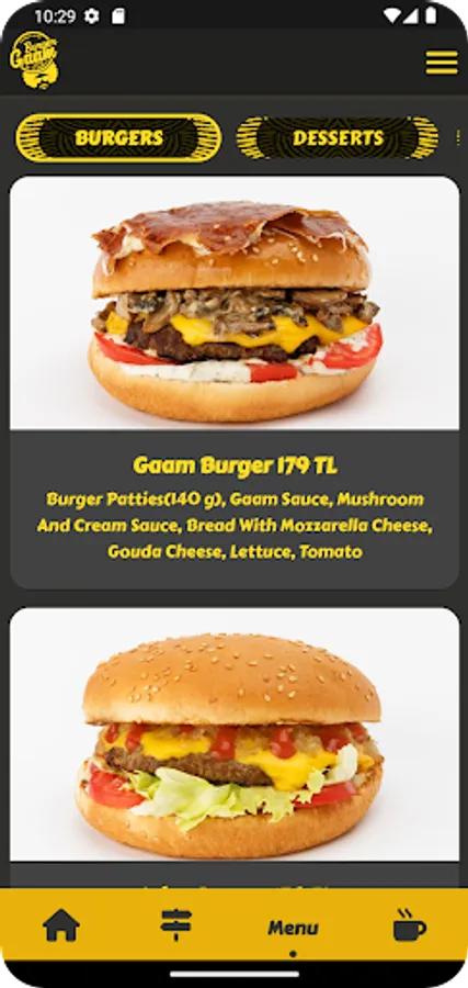 Crafted with a passion for gastronomy and an unwavering commitment to quality, our Gaam Burger is more than just a dish; it's a symphony of flavors that dance on your palate. Every bite is a journey through a harmonious blend of premium ingredients, carefully selected to create a culinary experience that transcends the ordinary.