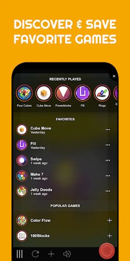 While surfing through games, you will of course love some of them more and want to be able play them whenever you want. So you can add the ones you loved to your favorites by just tapping the plus icon at the menu and save it to your personalized games list which will always be free and available for you to play.