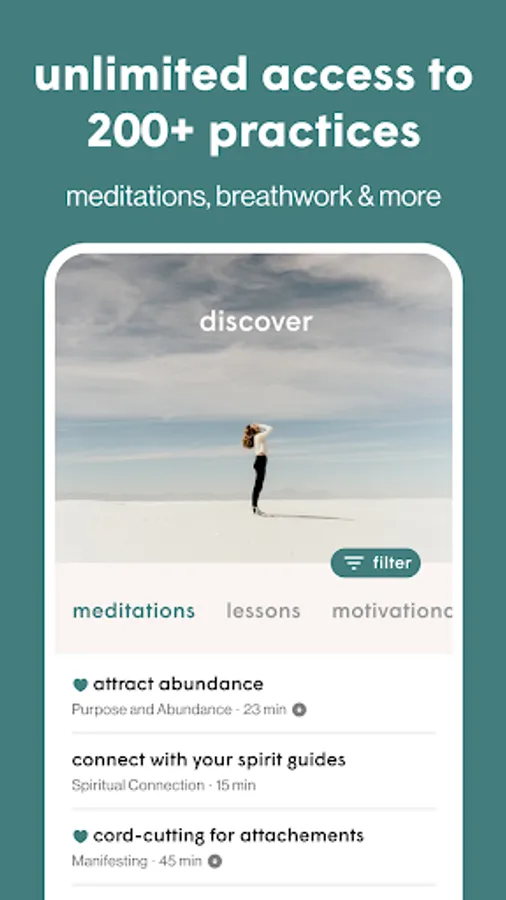 - Quick access to 200+ meditations, affirmations, lessons, manifesting methods & more
