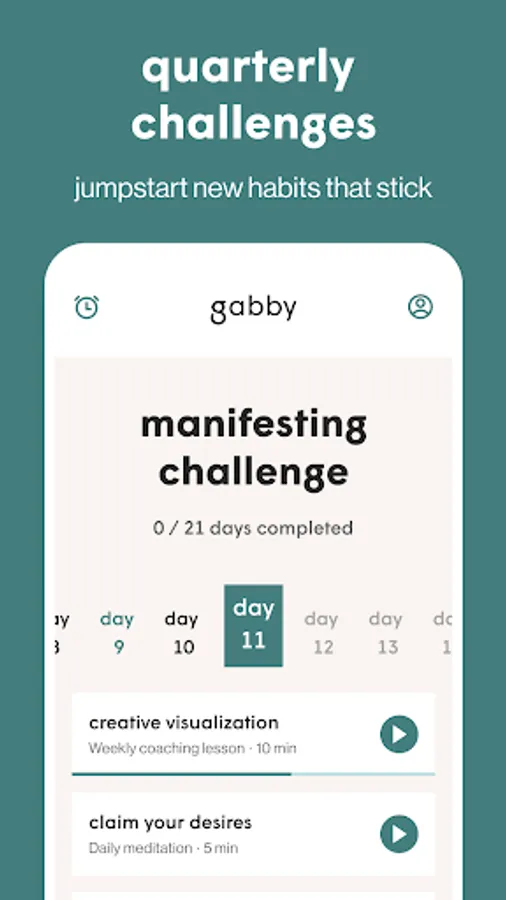 It's my mission to crack people open to their highest potential. My gabby coaching app makes personal growth easy and accessible for all. Get weekly lessons, guided meditations and proven manifesting methods to enhance every area of your life—on your own terms, at your own pace, all in one place.
