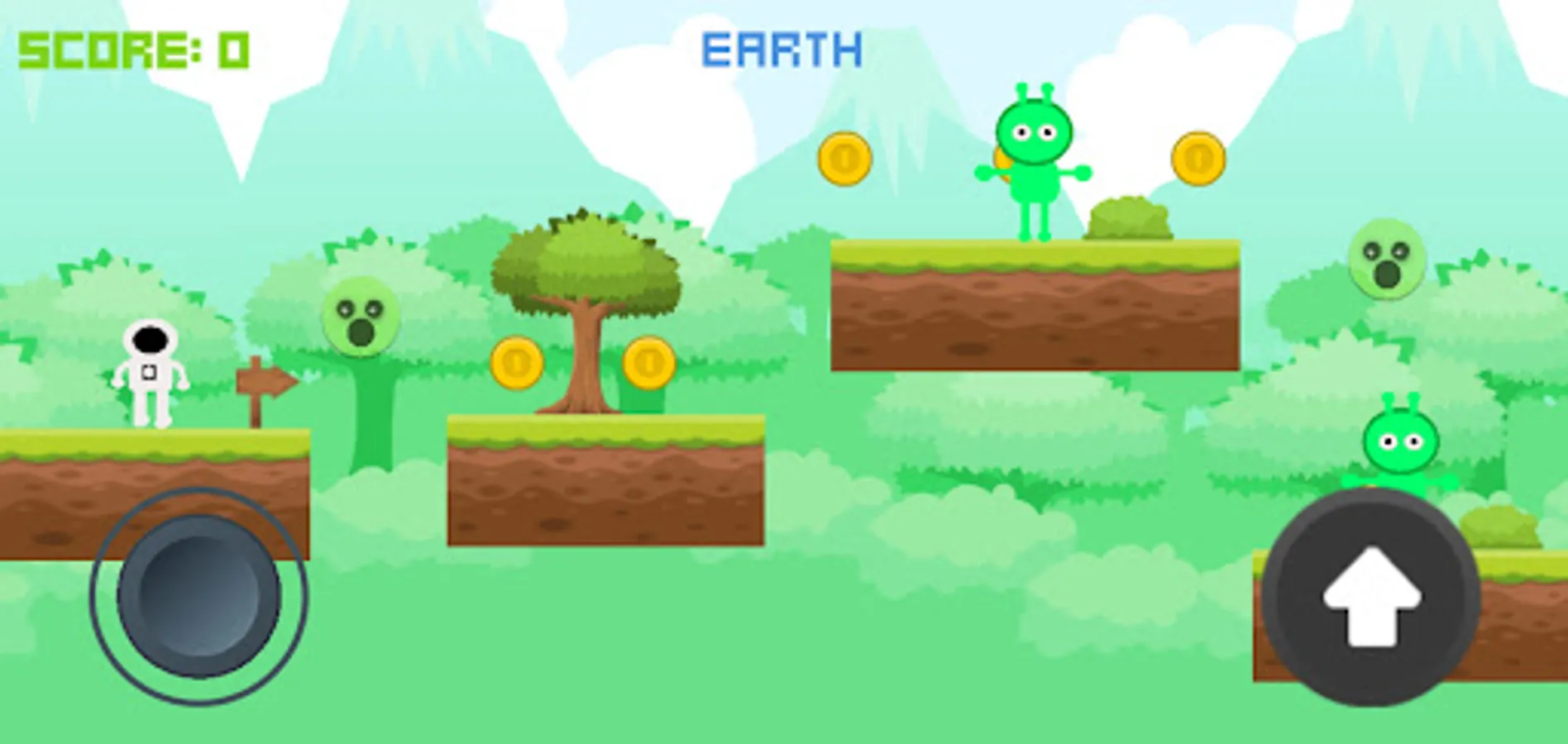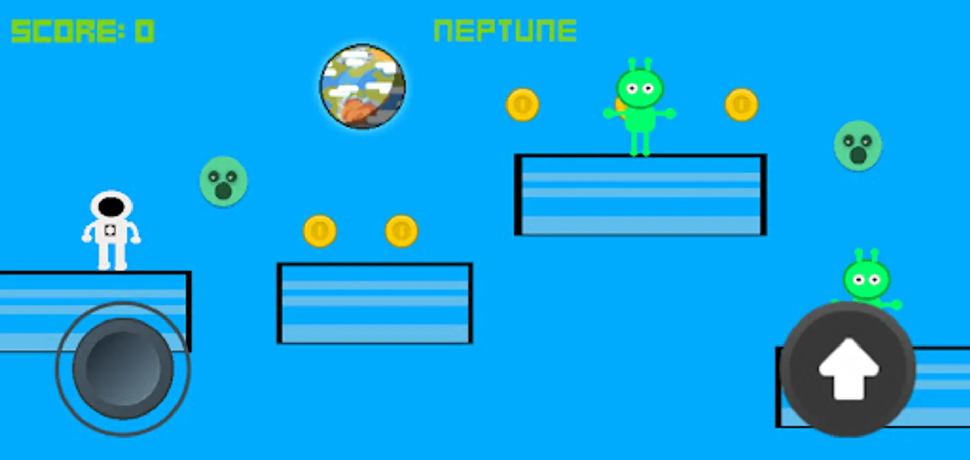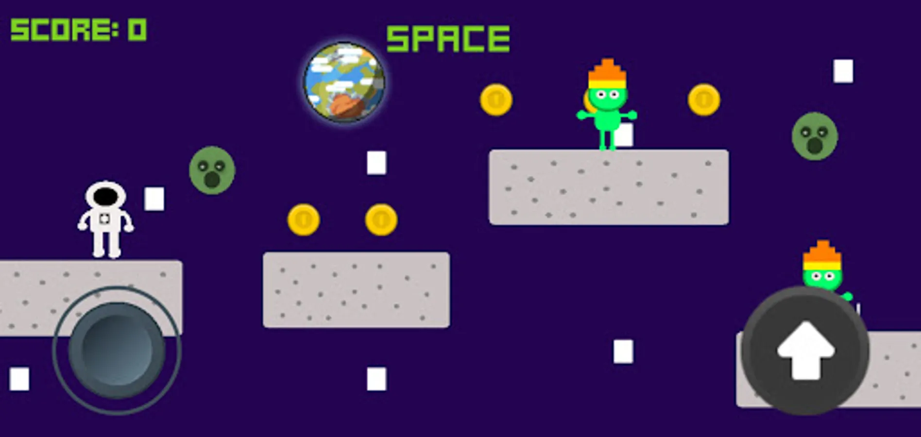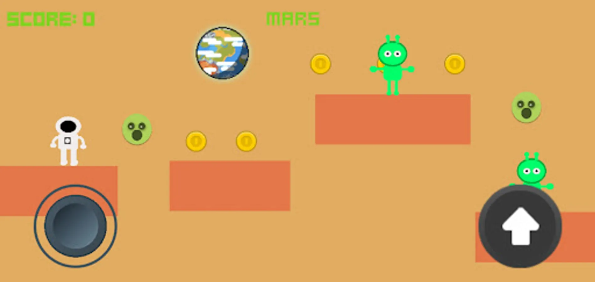 Welcome to Planet of Space. In this game you can go to 4 planets. Watch out for aliens, they have fire on their heads.