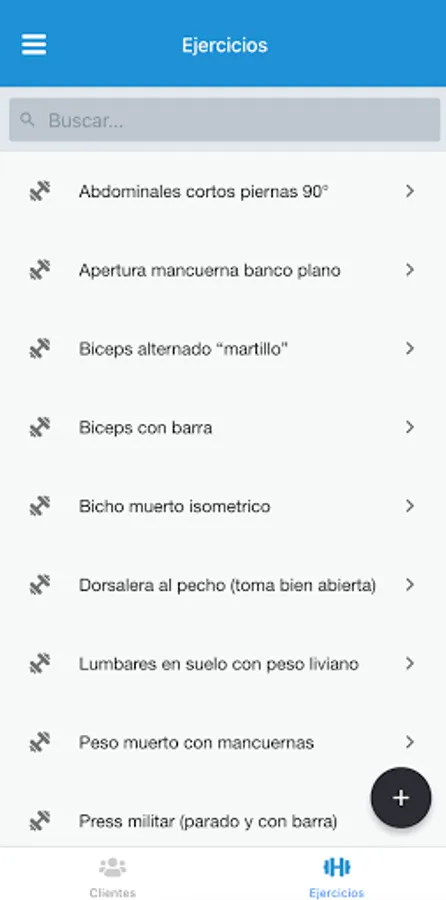 You will also be able to view, create and edit the list of exercises that you have created to use in your routines. You can add a name, a description and a YouTube video to each exercise to help explain its execution. This will allow you to manage your exercise list much more efficiently, since creating them only once will allow you to reuse them in all your routines.