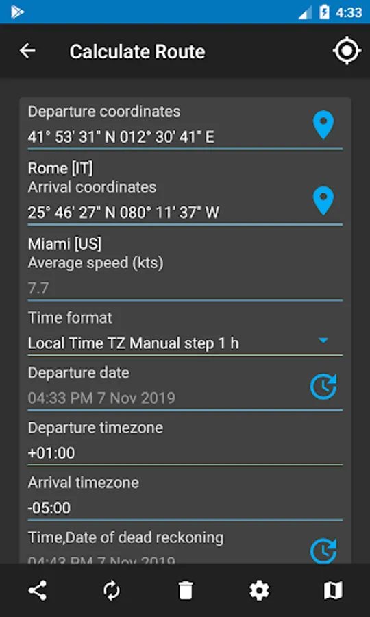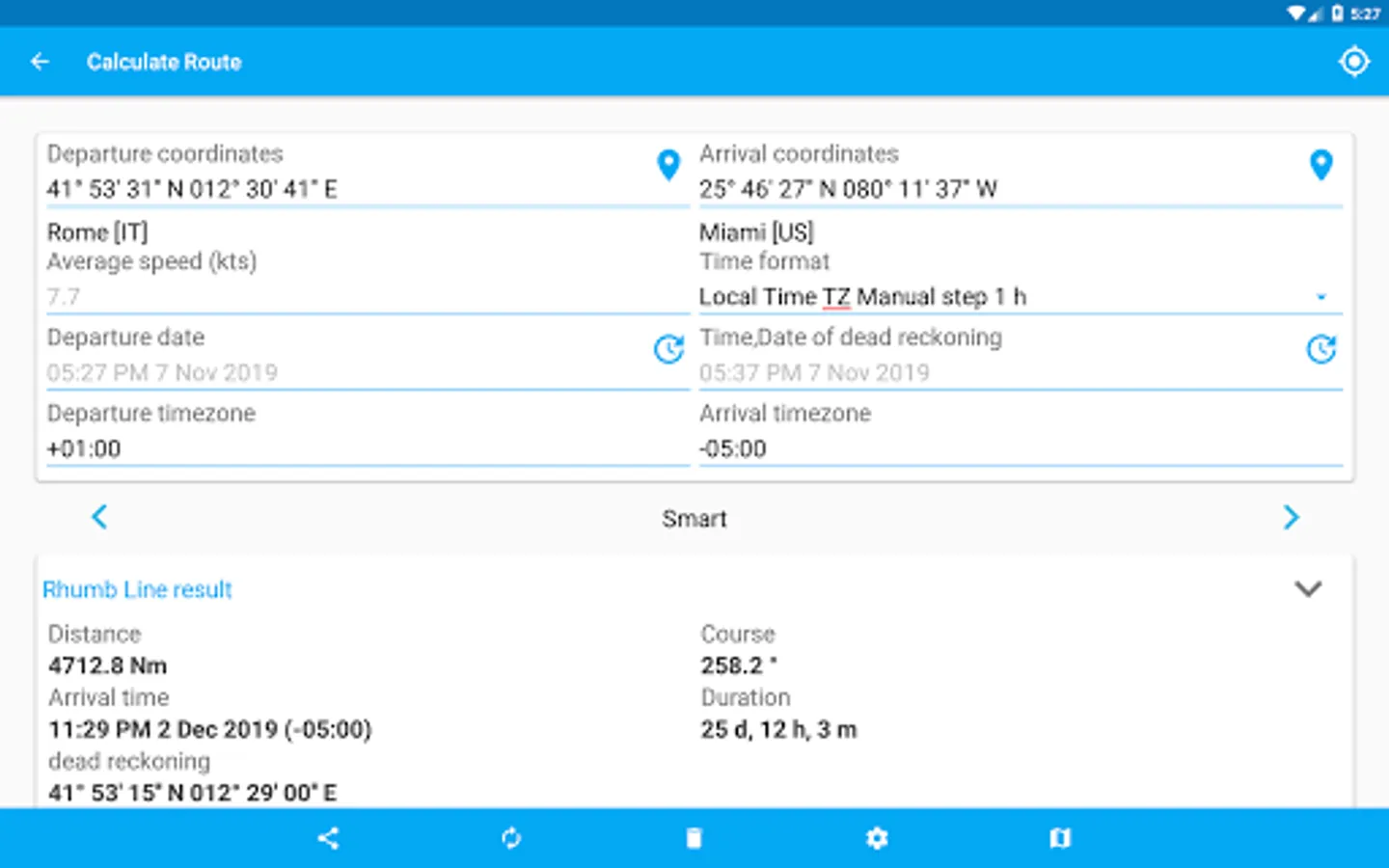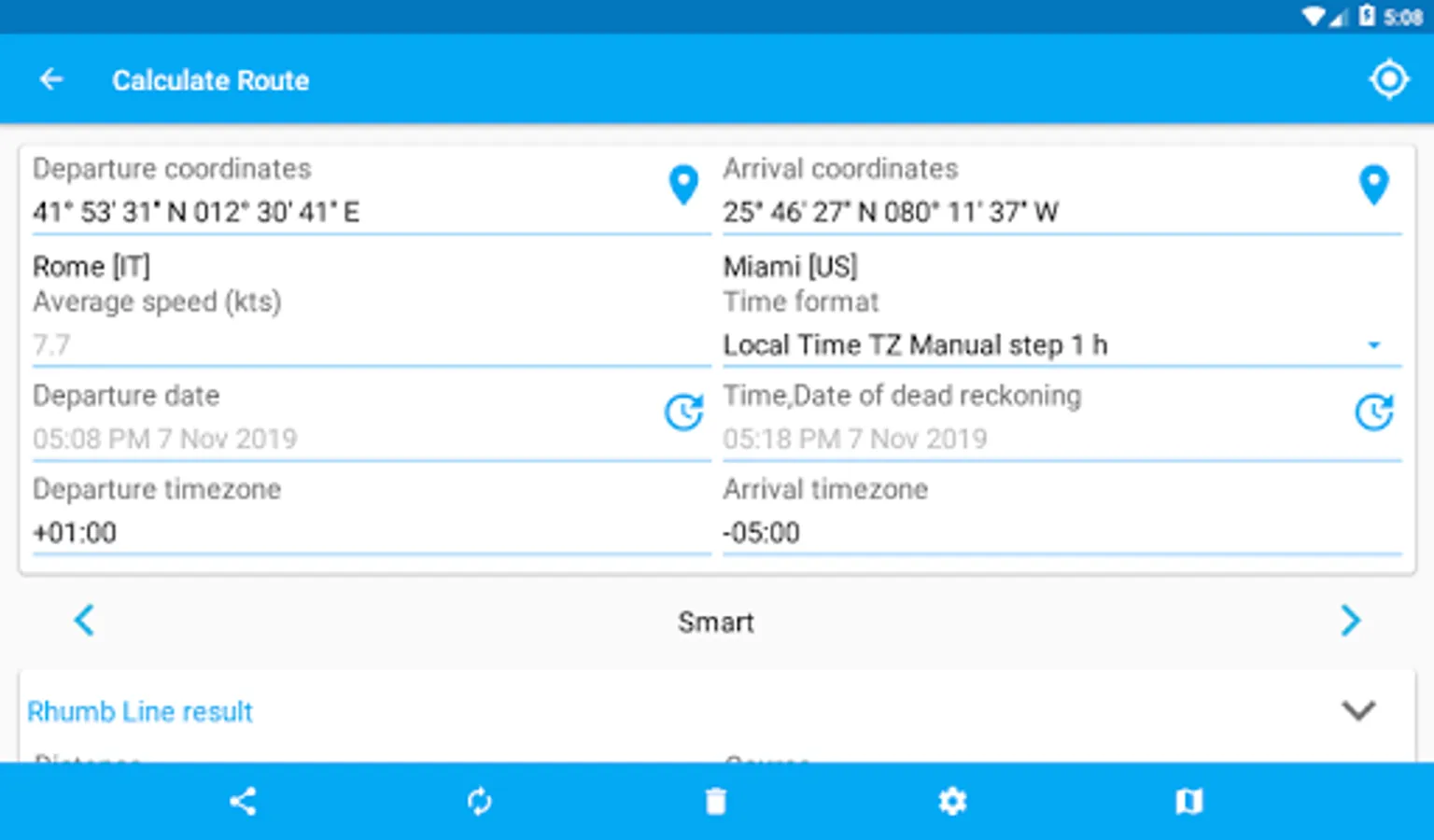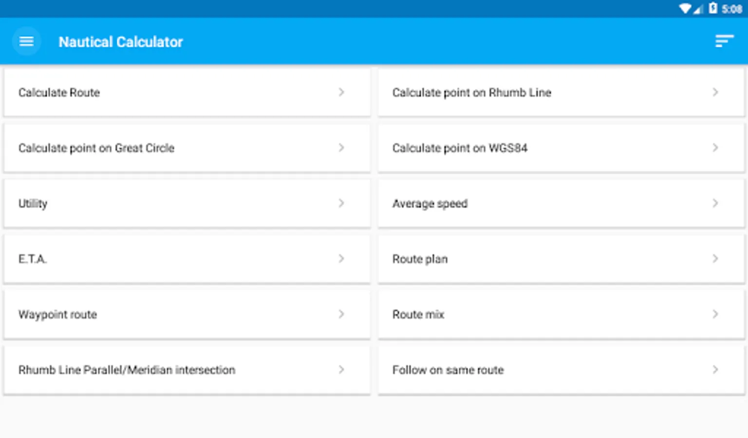 Nautical Calculator is an Android application that calculates rhumb line and great circle navigation.