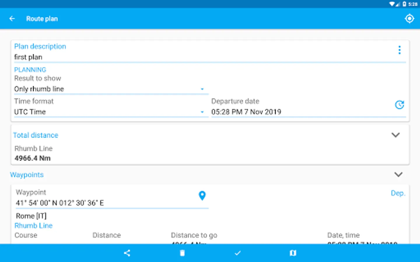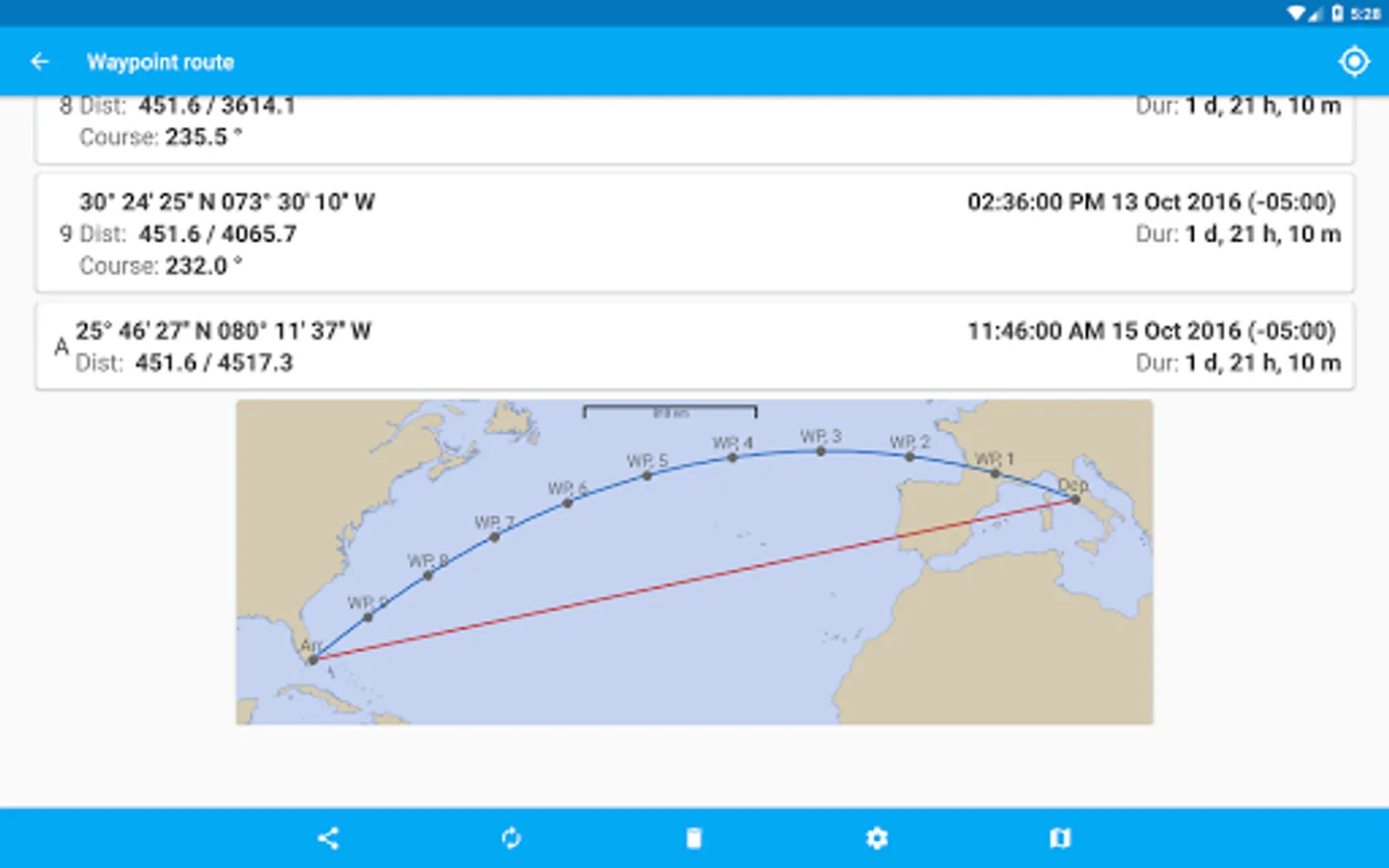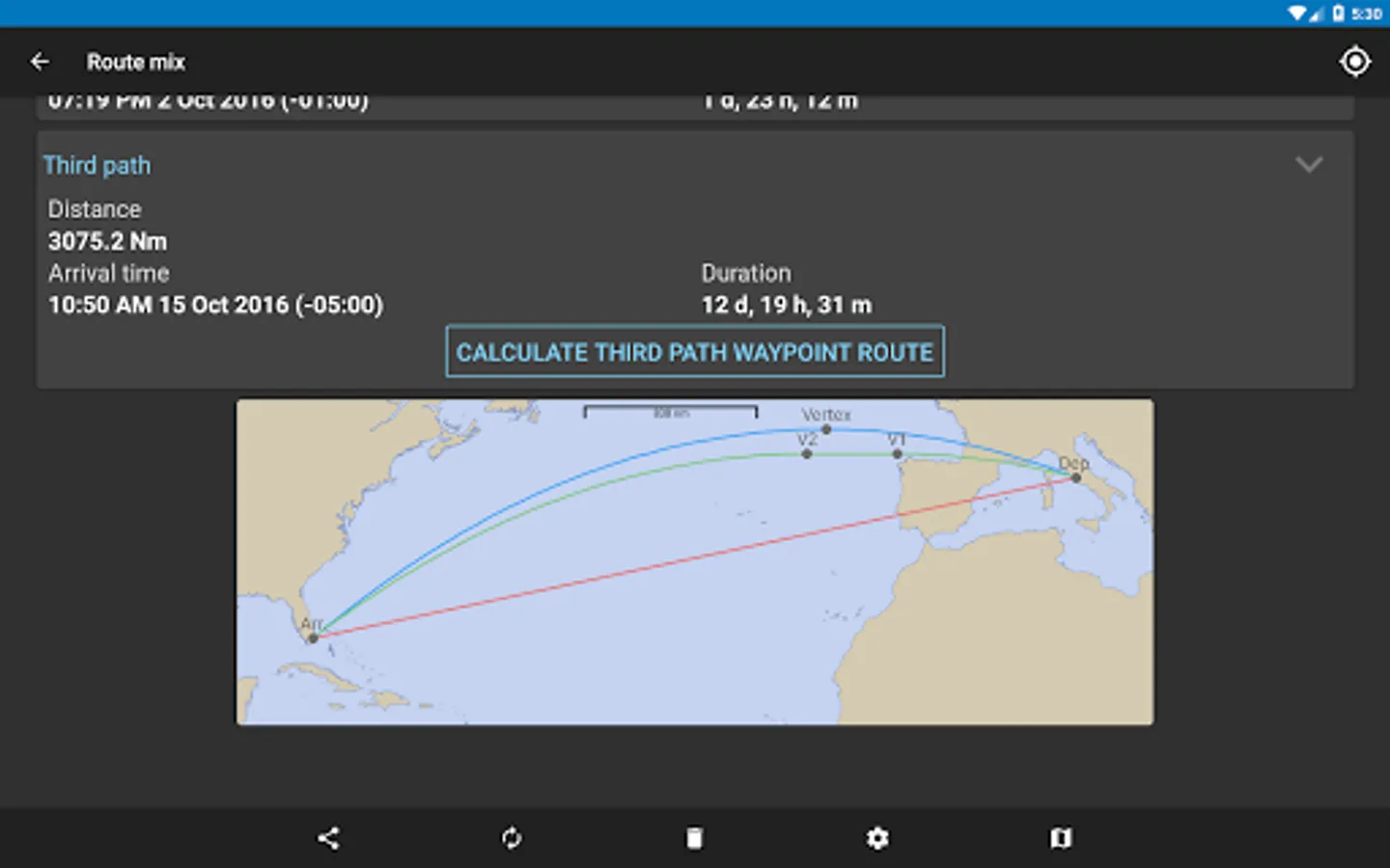 In routes feature there is a world map: it isn't a nautical chart and is not for use as a saling chart, but as a simple general means of showing the courses through the water on earth, this map isn't for navigational purposes.