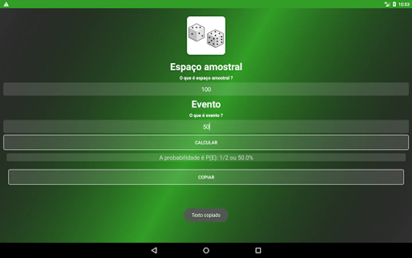 Calculadora de Probabilidade Screenshots
