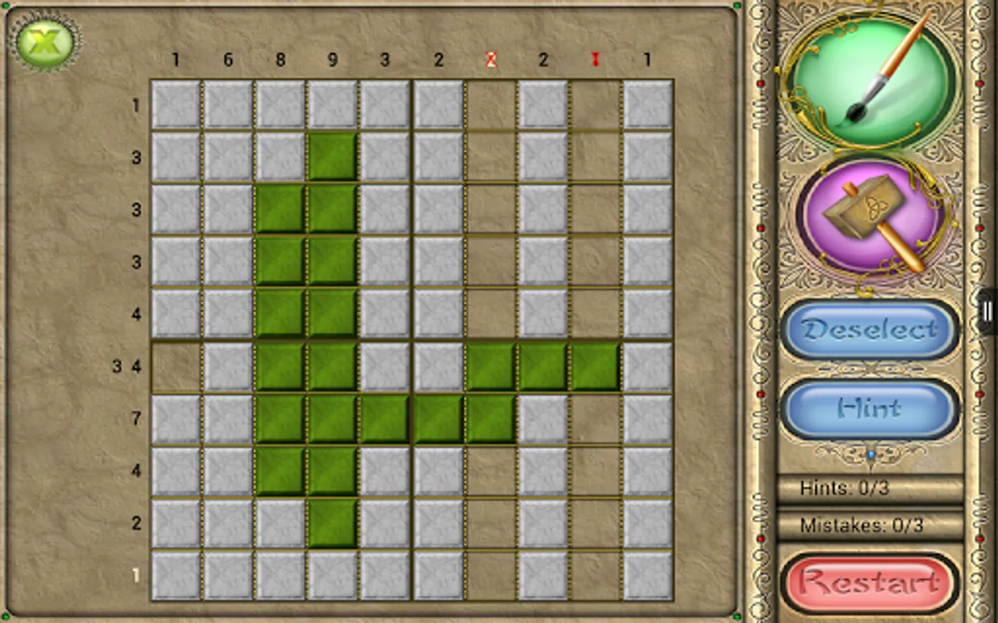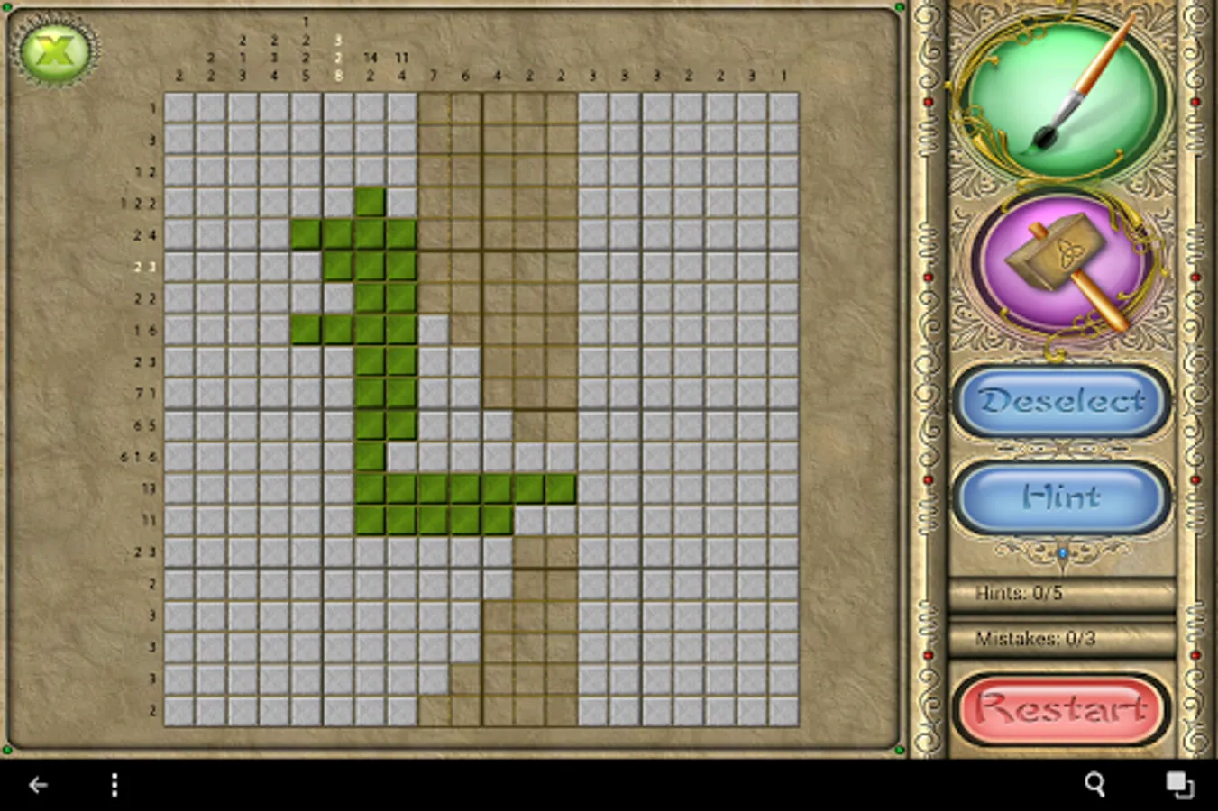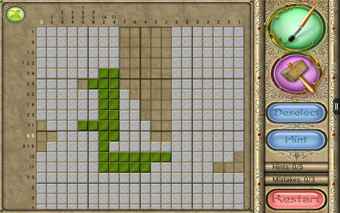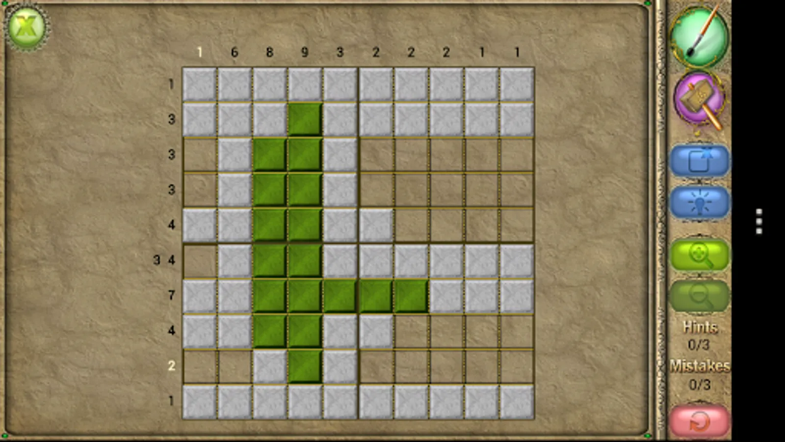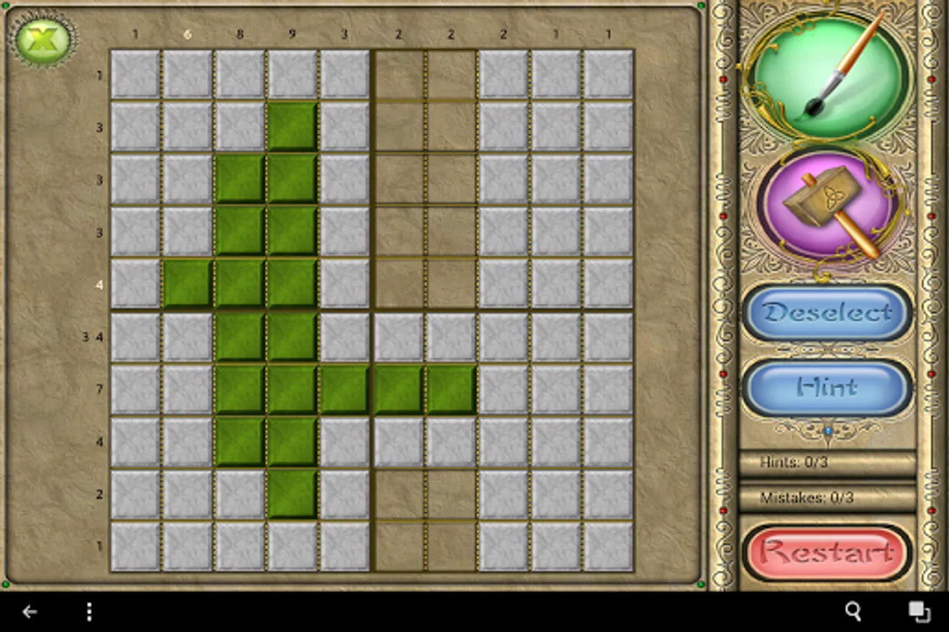 An old Japanese logic puzzle takes on a new look with FlipPix Art! Touch tiles to paint them or break them to form colorful components of paintings. The goal is to use logic to determine which tiles should be filled to reveal a hidden picture.