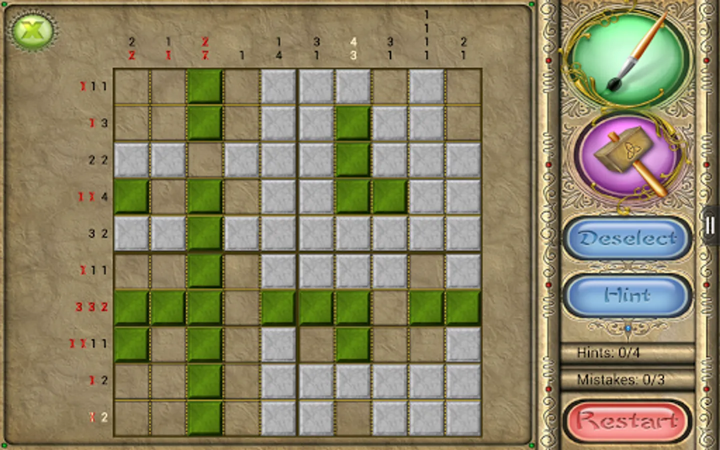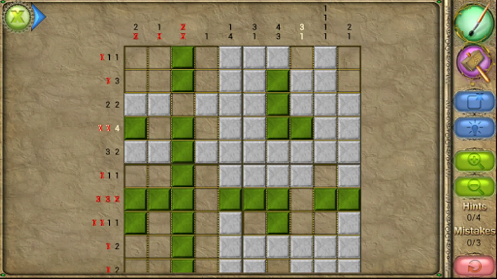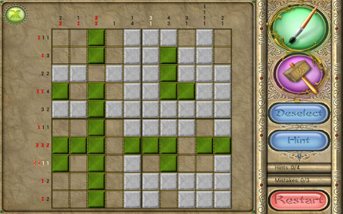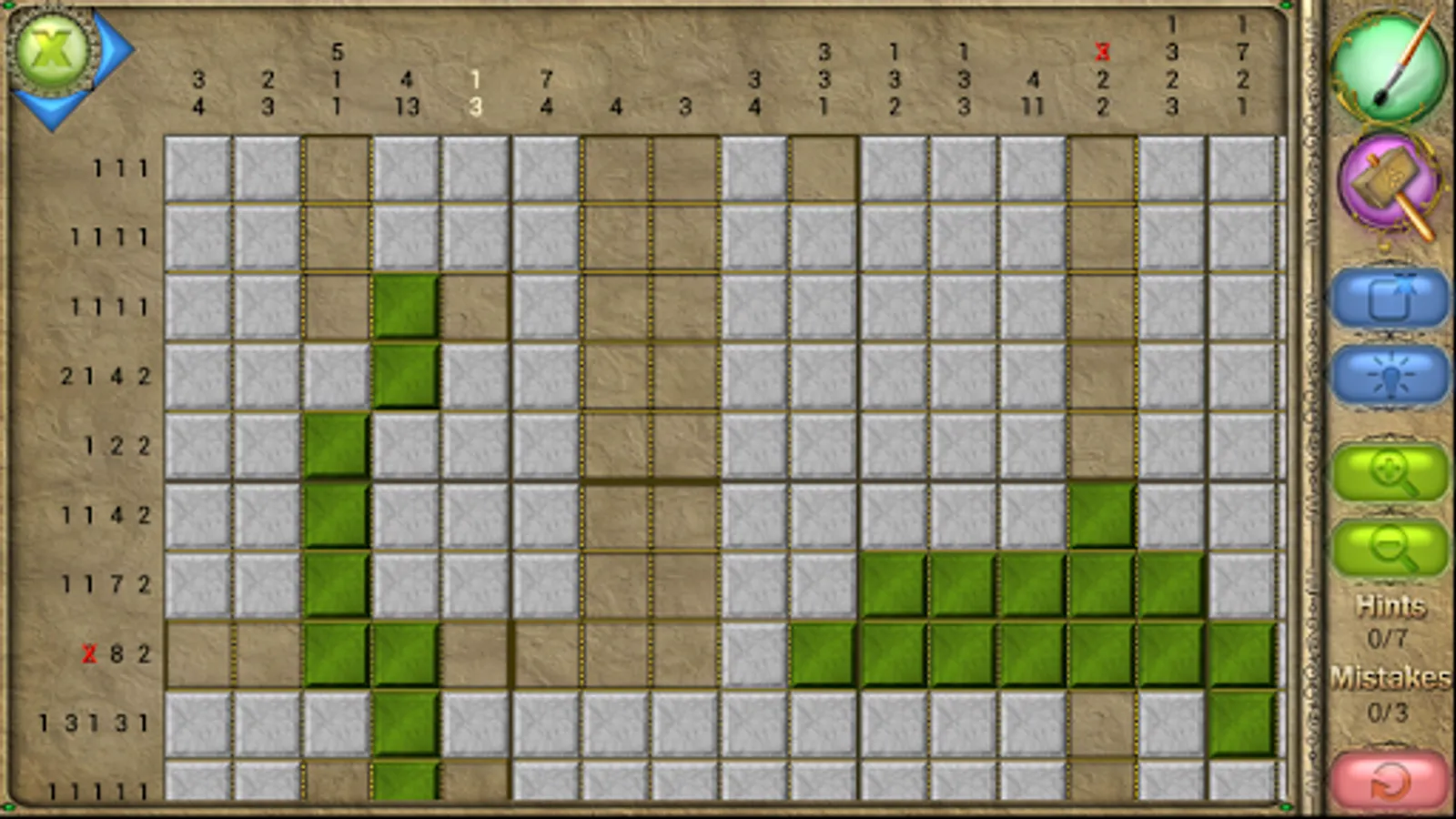 An old Japanese logic puzzle takes on a new look with FlipPix Art! Touch tiles to paint them or break them to form colorful components of paintings. The goal is to use logic to determine which tiles should be filled to reveal a hidden picture.
